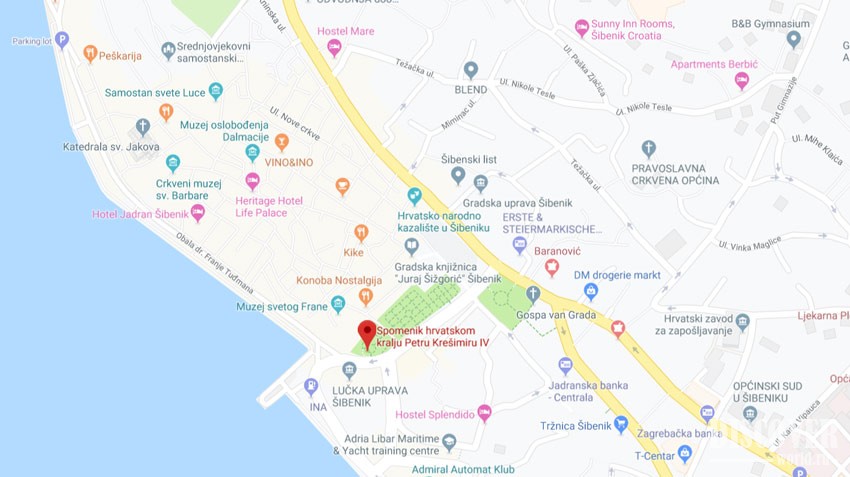 Monument to Peter Krešimir IV location in Šibenik is not accidental. People say that Petar Kresimir was the founder of this city. Sometimes locals inhabitants call Šibenik "Krešimir's city" (in Croatian "Krešimirov grad") in honor of Petar Kresimir.