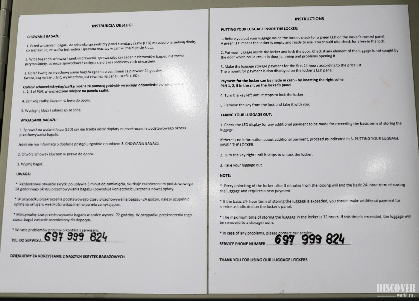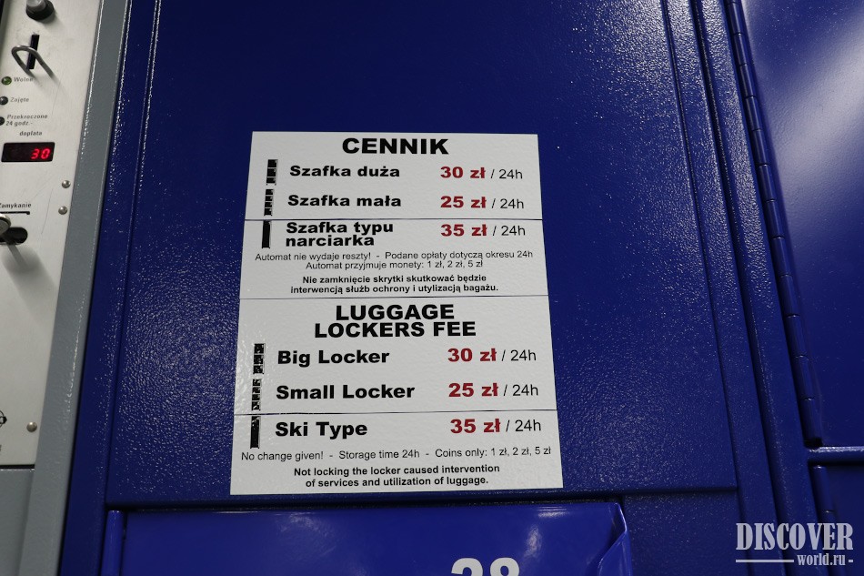 - Large locker - 30 PLN / 24 hours.