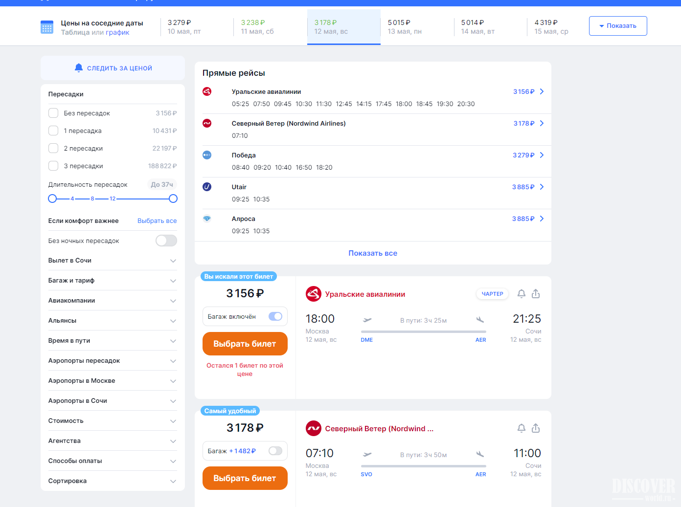 Доступны билеты от 3156 руб. разных авиалиний на разных условиях.