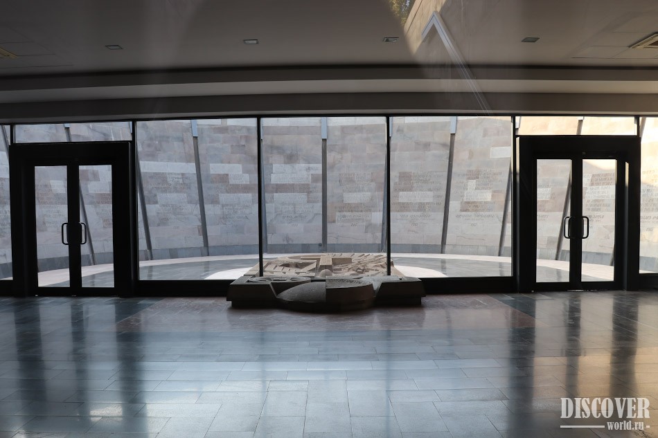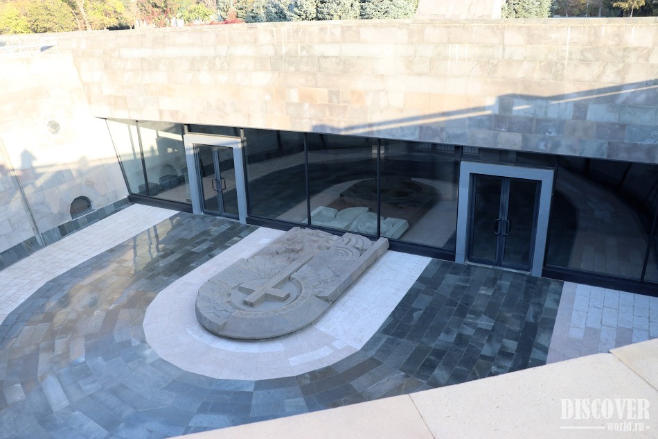 Музей-институт Геноцида армян находится на территории мемориального комплекса Цицернакаберд.