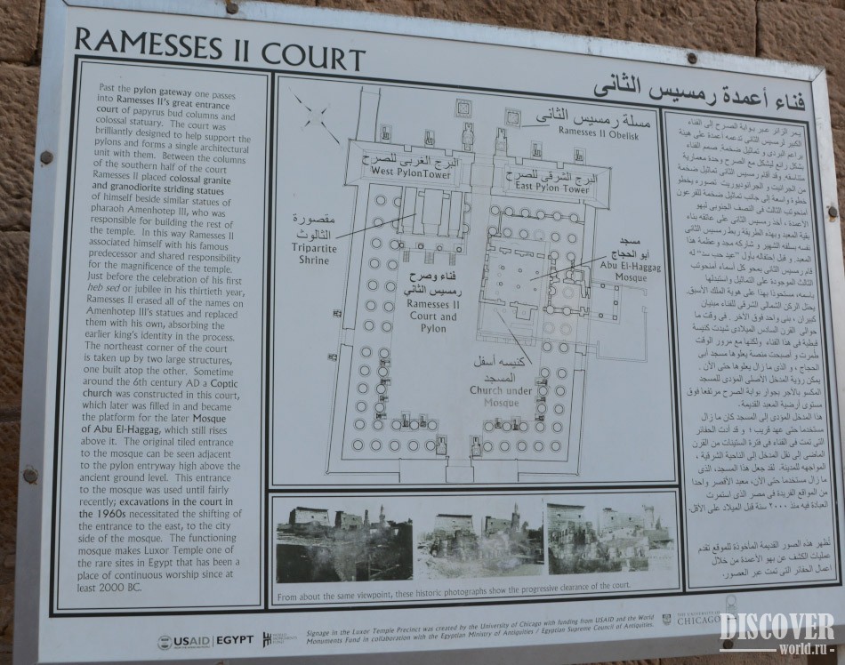 Долгое время храм был погребен под улицами и домами Луксора. Со временем над ним была построена мечеть суфийского шейха Юсуфа Абу аль-Хаджаджа. Эта мечеть была тщательно сохранена, когда храм был обнаружен, и сегодня является неотъемлемой частью этого места.
