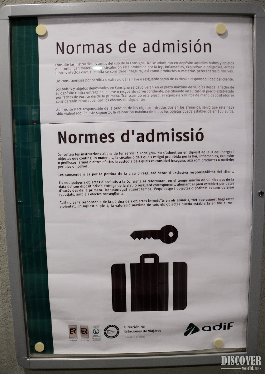 Время работы камеры хранения в Жироне