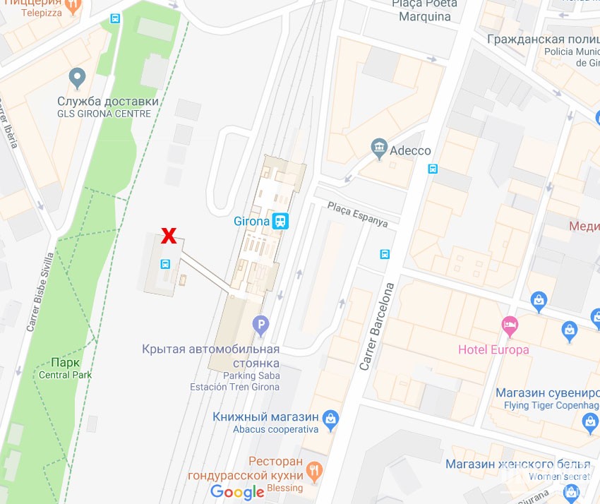 Камера хранения багажа находится на железнодорожной станции Жироны, рядом с переходом на автобусную станцию (см. план вокзала ниже).