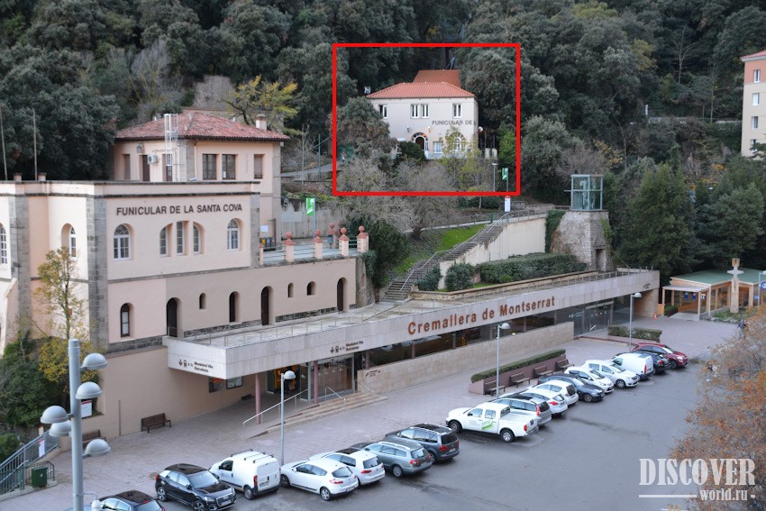 Сам фуникулер расположен чуть выше станции зубчатой железной дороги - кремальеры (Cremallera de Montserrat). При выходе со станции вам необходимо будет повернуть налево, пройти мимо центра туристической информации и чуть далее опять свернуть налево на лестницу. Затем подняться наверх на несколько пролетов - и вы уже у подъемника (там будут указатели).