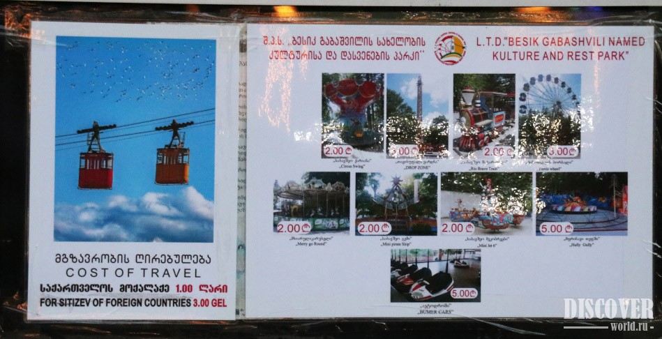 В парке можно найти различные аттракционы, покататься на колесе обозрения, а также посмотреть на Кутаиси с высоты.