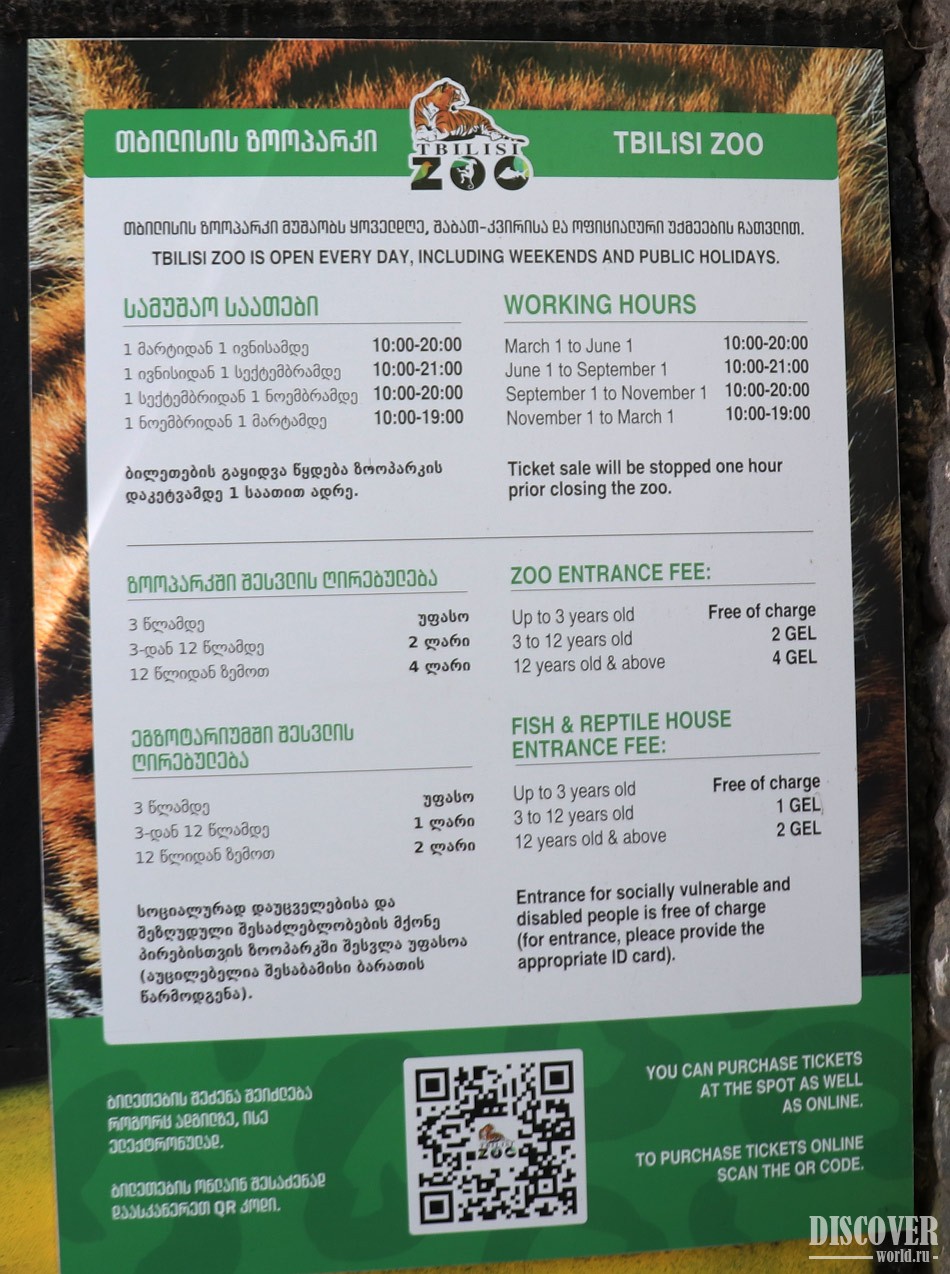 Вход в зоопарк бесплатный для социально незащищенных лиц и инвалидов (необходимо предъявить соответствующие документы).