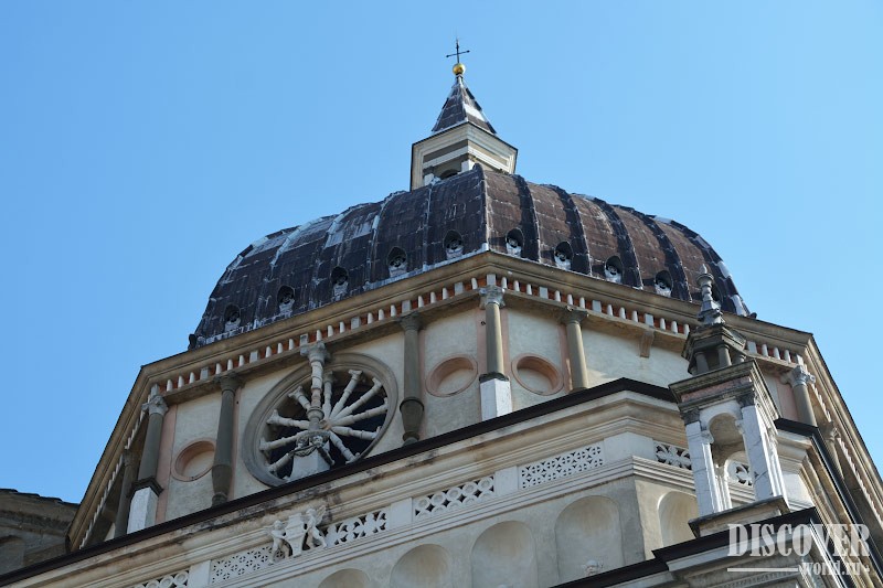 Фасад капеллы украшен красно-белым мрамором, подлинным итальянским шедевром эпохи Возрождения. Интерьеры - это фантастическая коллекция работ: конная статуя Бартоломео Коллеони, наемный капитан из Бергамо, мраморные саркофаги, изысканная гробница Медеи, инкрустированные деревянные столы.