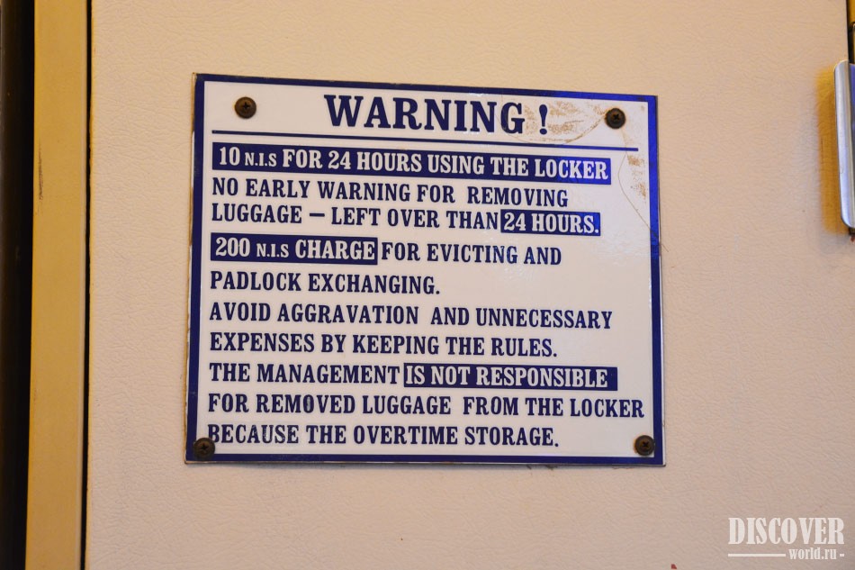 Камера хранения тут ручная, за каждый элемент багажа придется платить отдельно.