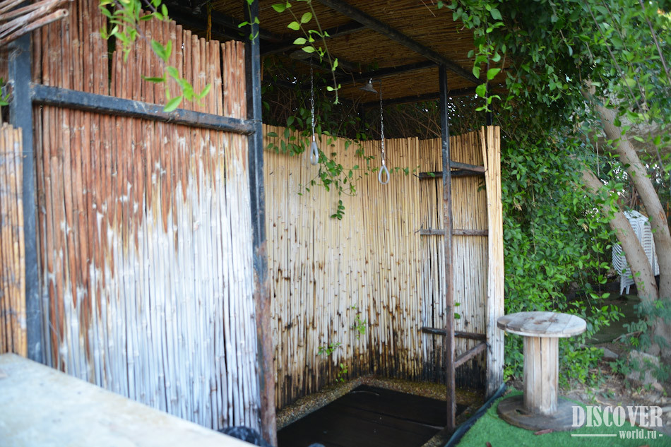 Заходить в воду можно только в определенных местах, где нет ограждения. Это сделано для того, чтобы купающиеся не повредили кораллы. Из-за близости кораллового рифа купаться тут очень интересно, даже у берега плавает множество красивых рыб.