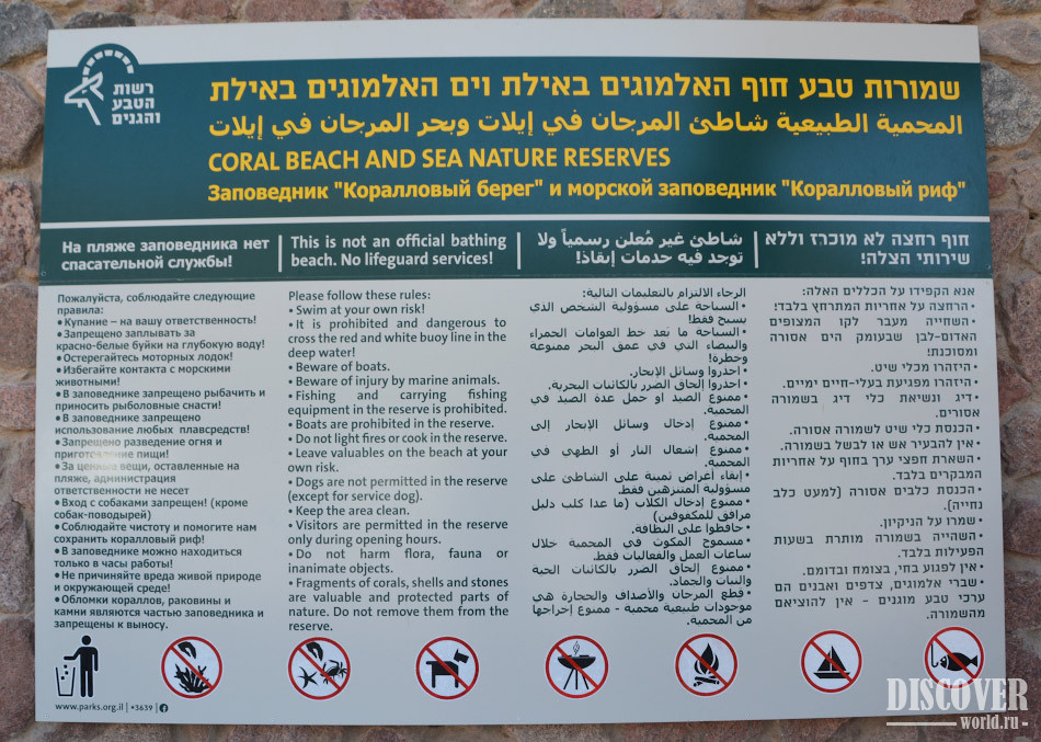 Природный заповедник "Коралловый берег" или "Коралловый пляж" и морской заповедник "Коралловый риф" (Eilat Coral Beach Nature Reserve) - популярное место отдыха для туристов в Эйлате.