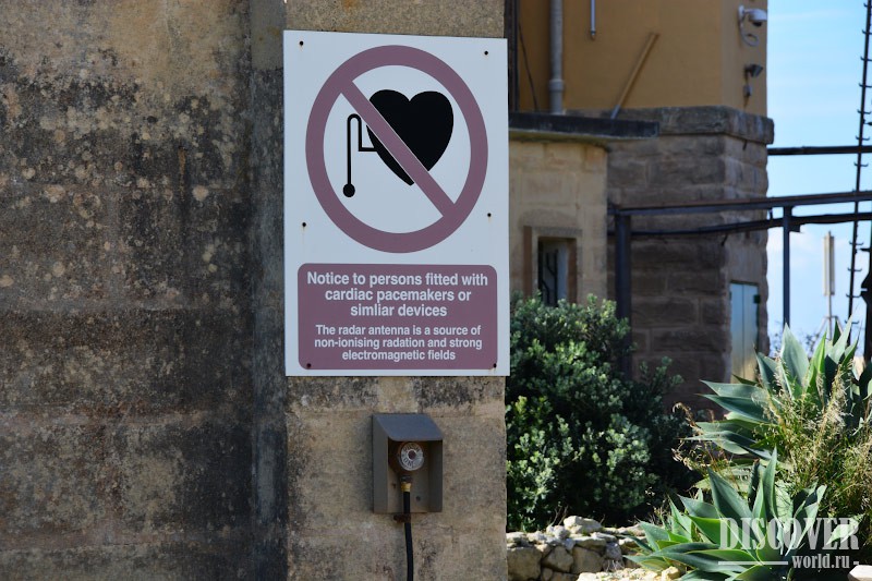 Вход на территорию за забором строго запрещен. Также на заборе висит предупреждение для людей с кардиостимуляторами и похожими приборами, потому что антенна радара - это источник мощных электромагнитных полей и неионизирующего излучения.