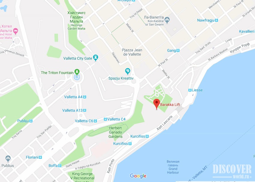 Лифт находится в Верхних садах Барракка, точное место отмечено на карте ниже: