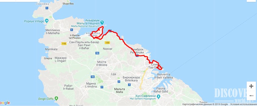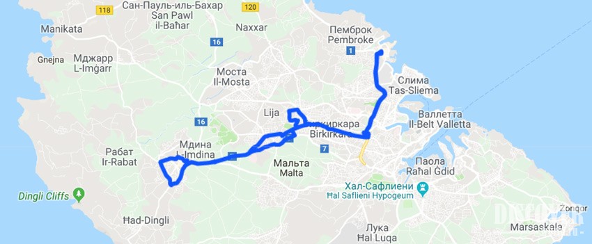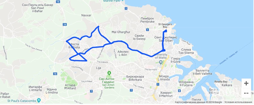 Полный маршрут: Il-Belt Valletta / Il-Floriana / Tal-Pieta / L-Imsida / Ta’Xbiex / Il-Gzira / Tas-Sliema / St. Julian’s - San Giljan