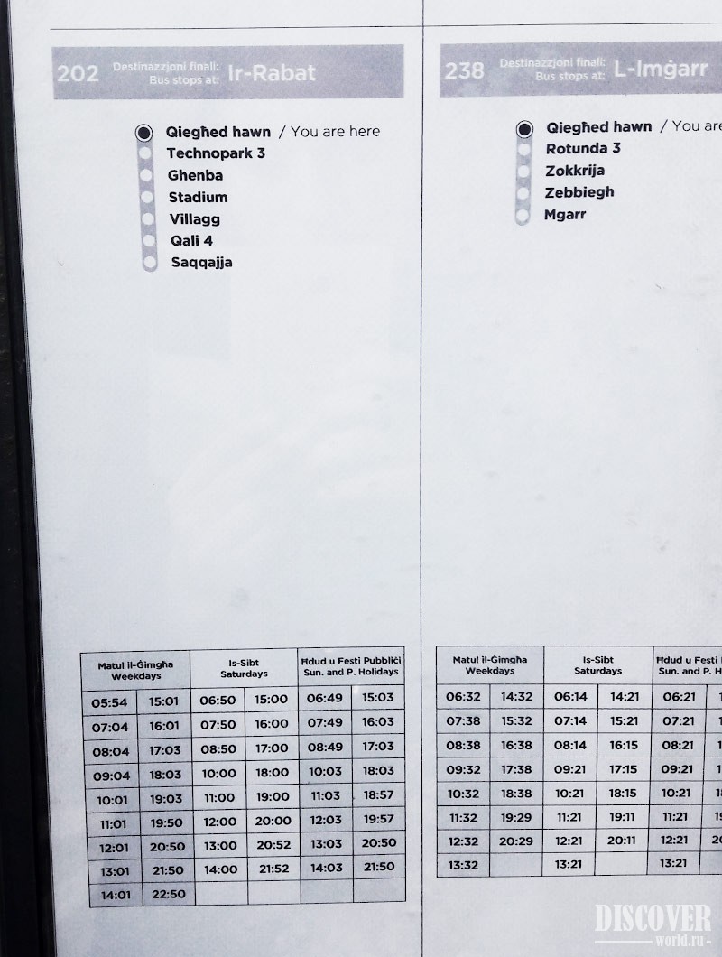 Пример расписания на остановке на Мальте