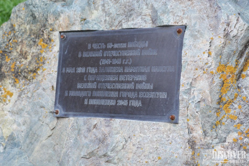 У подножия этой стелы захоронена урна с землей с братских могил, где были захоронены войны из Ессентуков.