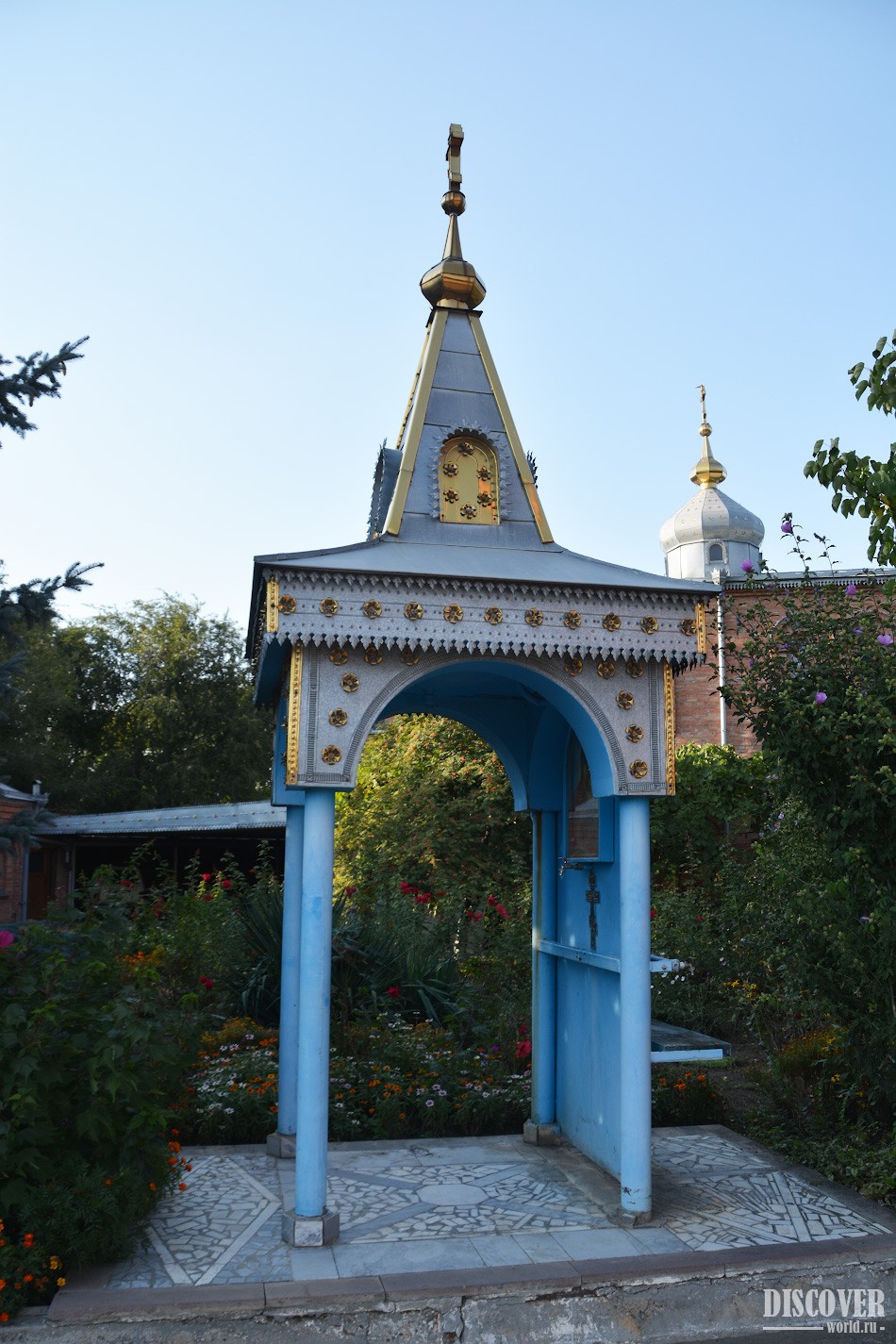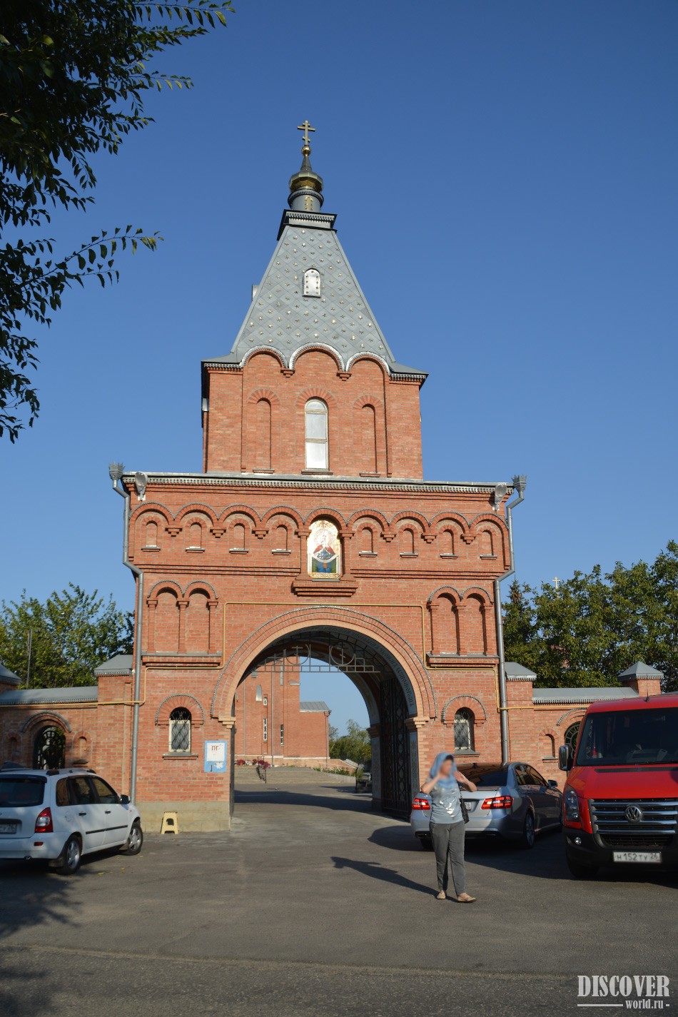 Территория храма огорожена стеной, на входе располагаются ворота: