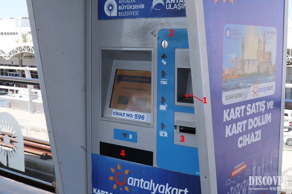 Узнать баланс имеющейся Antalya Kart просто - приложите ее к месту для карты (на картинке выше отмечено цифрой 1).