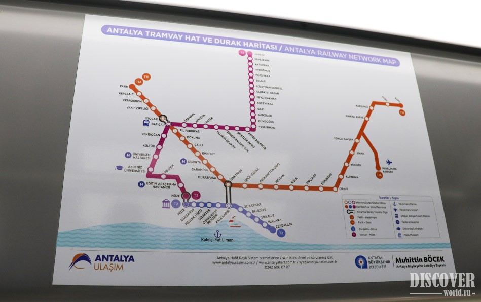 Трамвай в Анталье в каком-то роде заменяет метро. Вход на платформы осуществляется через турникеты.