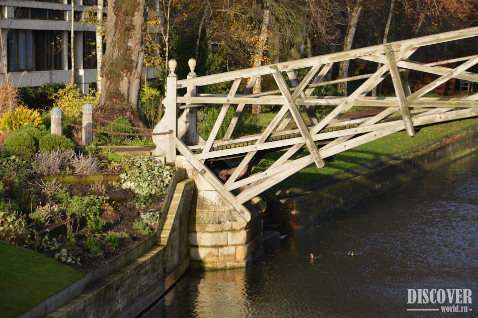Мост находится на территории колледжа Куинз. Пройтись по нему вам вряд ли удастся, но посмотреть на него можно свободно с соседнего моста.