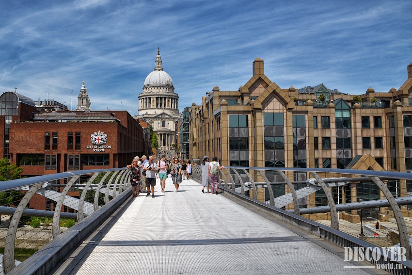 С одной стороны моста находится собор Св. Павла (St Paul's Cathedral), с другой - галерея Тейт Модерн (Tate Modern).